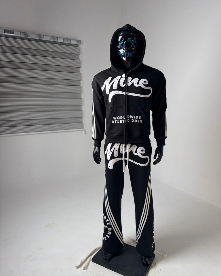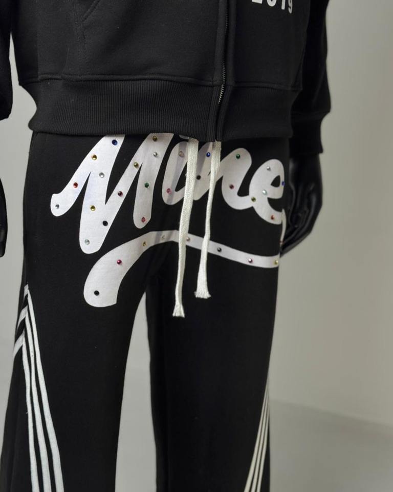 Sweat à capuche et pantalon de survêtement d'hiver pour homme en molleton épais 100% coton, respirant, avec broderie losanges superposées, style streetwear, fermeture éclair