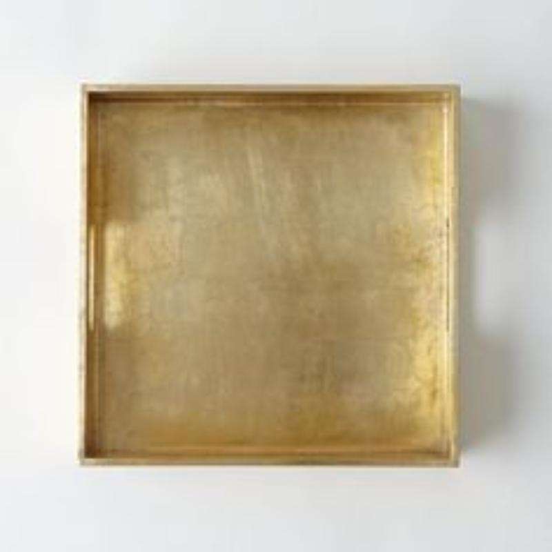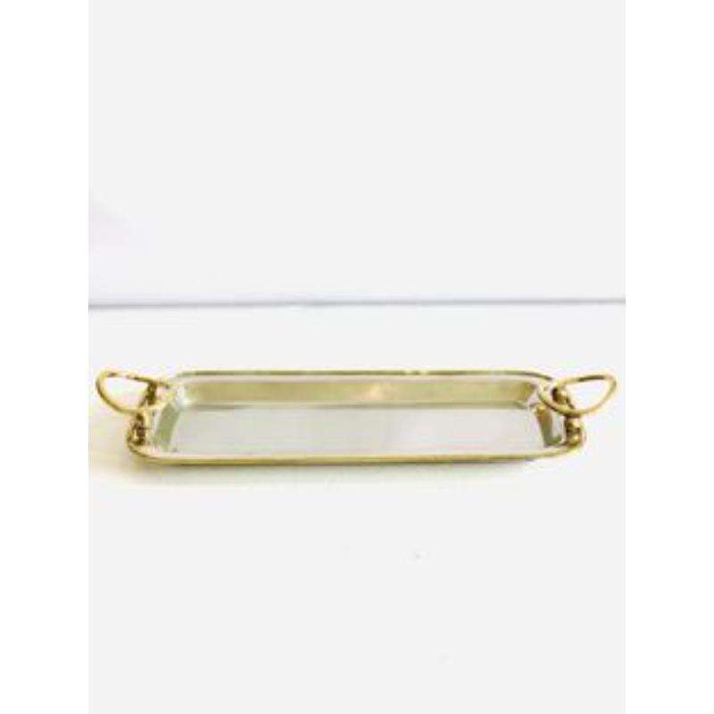 Plateau de service en laiton lourd avec finition dorée lisse utilisé pour les repas de cuisine de luxe et le service de restaurant