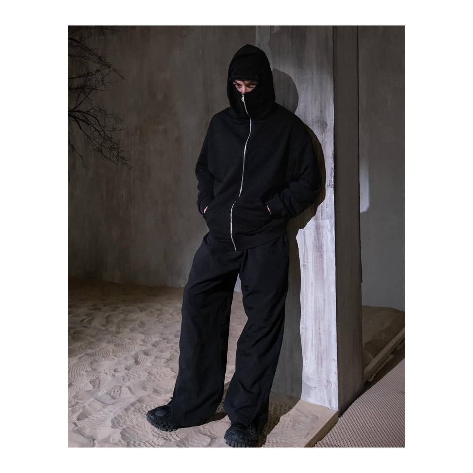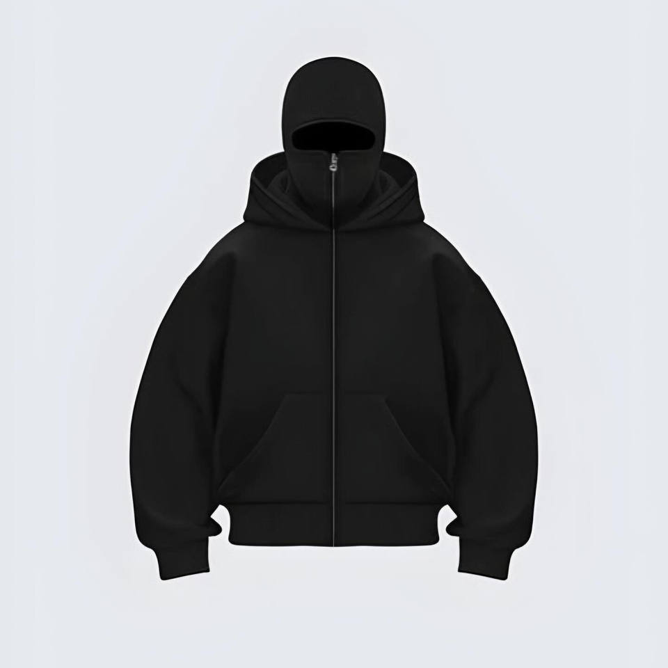 Heavyweight 100% Cotton Men's Balaclava Hoodie Sweatshirts Oversized Double Hood With Zip Drop Shoulder Customizable for Winter