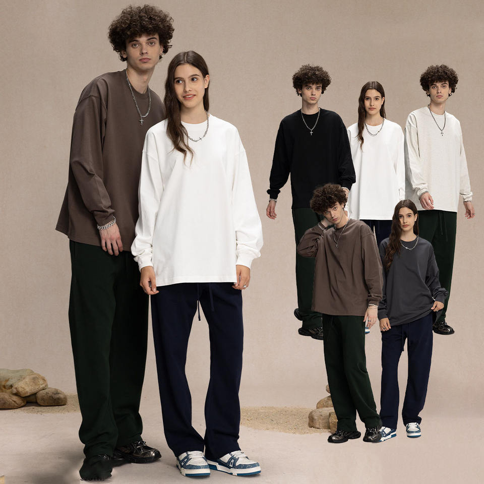 Heavyweight 100% Cotton T-Shirt Streetwear Long Sleeve Mens Oversized Plain Dyed Blank Solid T-shirt for men