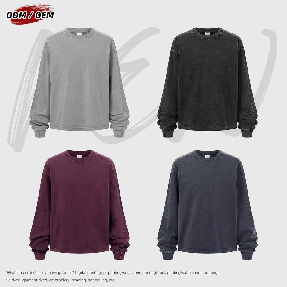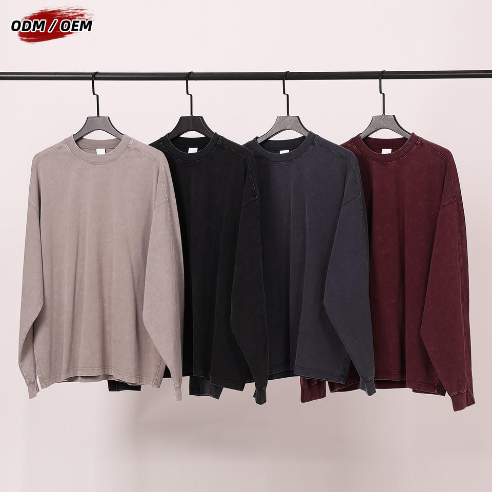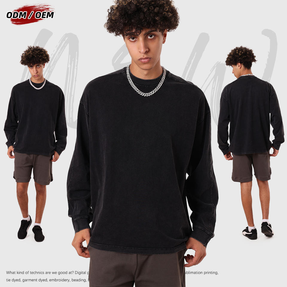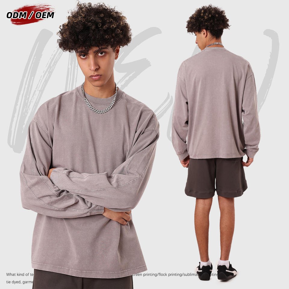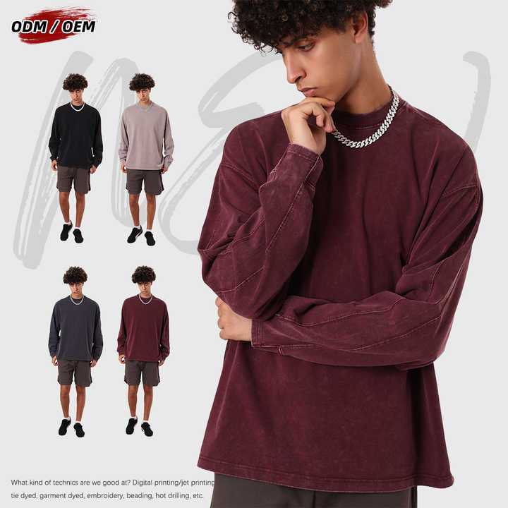 T-shirt vintage à manches longues en patchwork batik 100% coton lourd 285 grammes, col rond, surdimensionné pour homme, pour l'automne