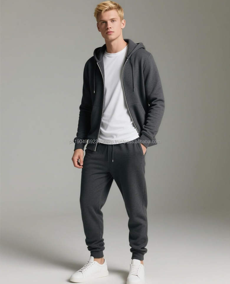 Ensemble de survêtement en molleton français lourd 500GSM pour homme, sweat-shirt à capuche et jogging, logo en relief, noir uni