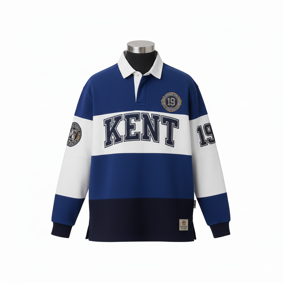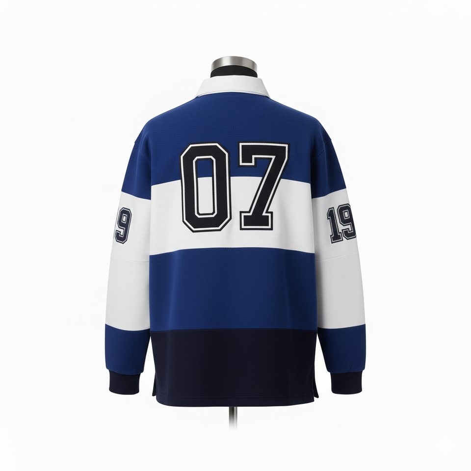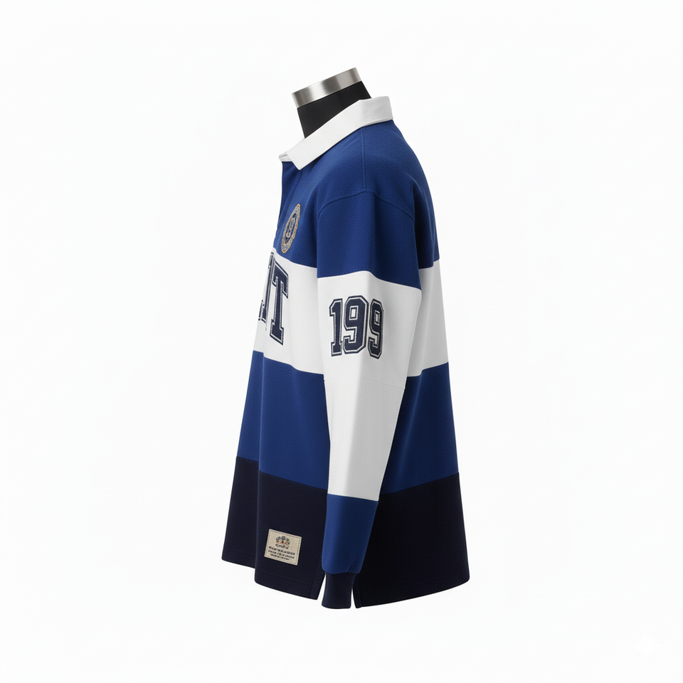 Polo de rugby en molleton de coton épais avec patchs brodés, manches longues, pour homme, style streetwear, OEM ODM, vente en gros