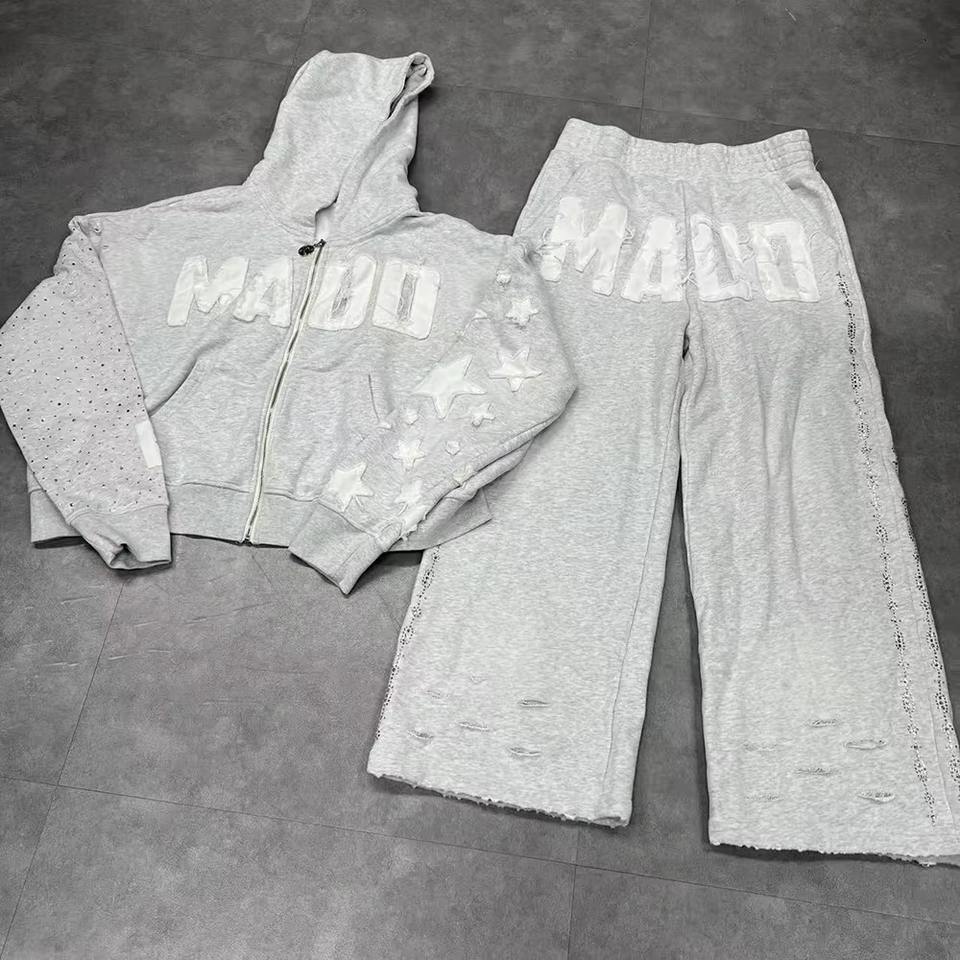 Ensemble de survêtement en molleton de coton épais, imprimé personnalisé, avec sweat à capuche et pantalon de survêtement, coupe oversize et ample pour homme