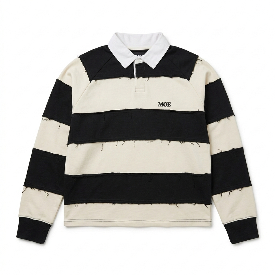 T-shirt Homme en Coton Épais à Rayures Rugby, Manches Longues, Style Streetwear, Épaules Tombantes, Marque Privée, Fabricant OEM