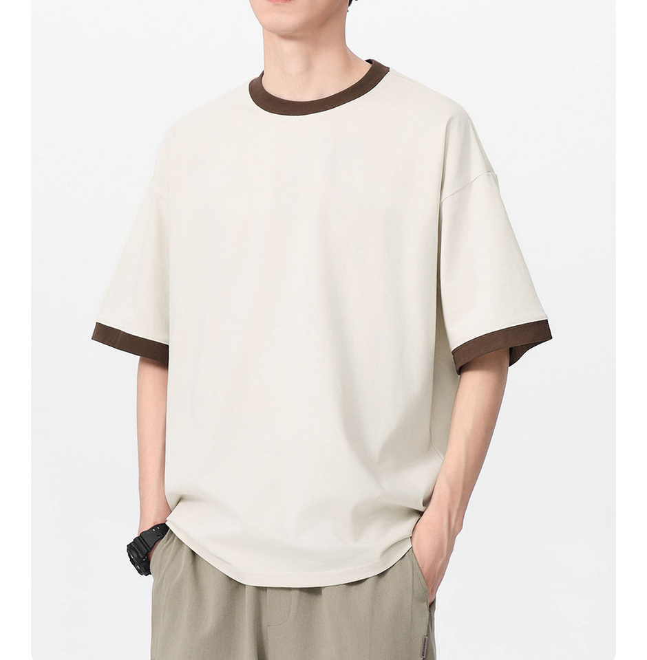 T-shirts à manches courtes coupe boxy ajustée, col contrastant, imprimé numérique personnalisable, qualité supérieure 250 g/m²
