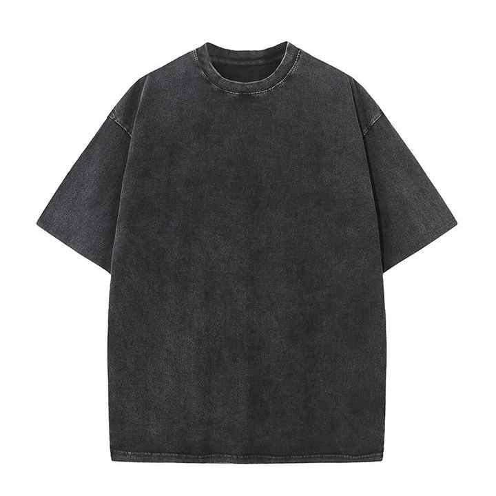 T-shirt personnalisé en coton peigné gris, coupe courte, col bas, épaules tombantes, style streetwear, grammage lourd