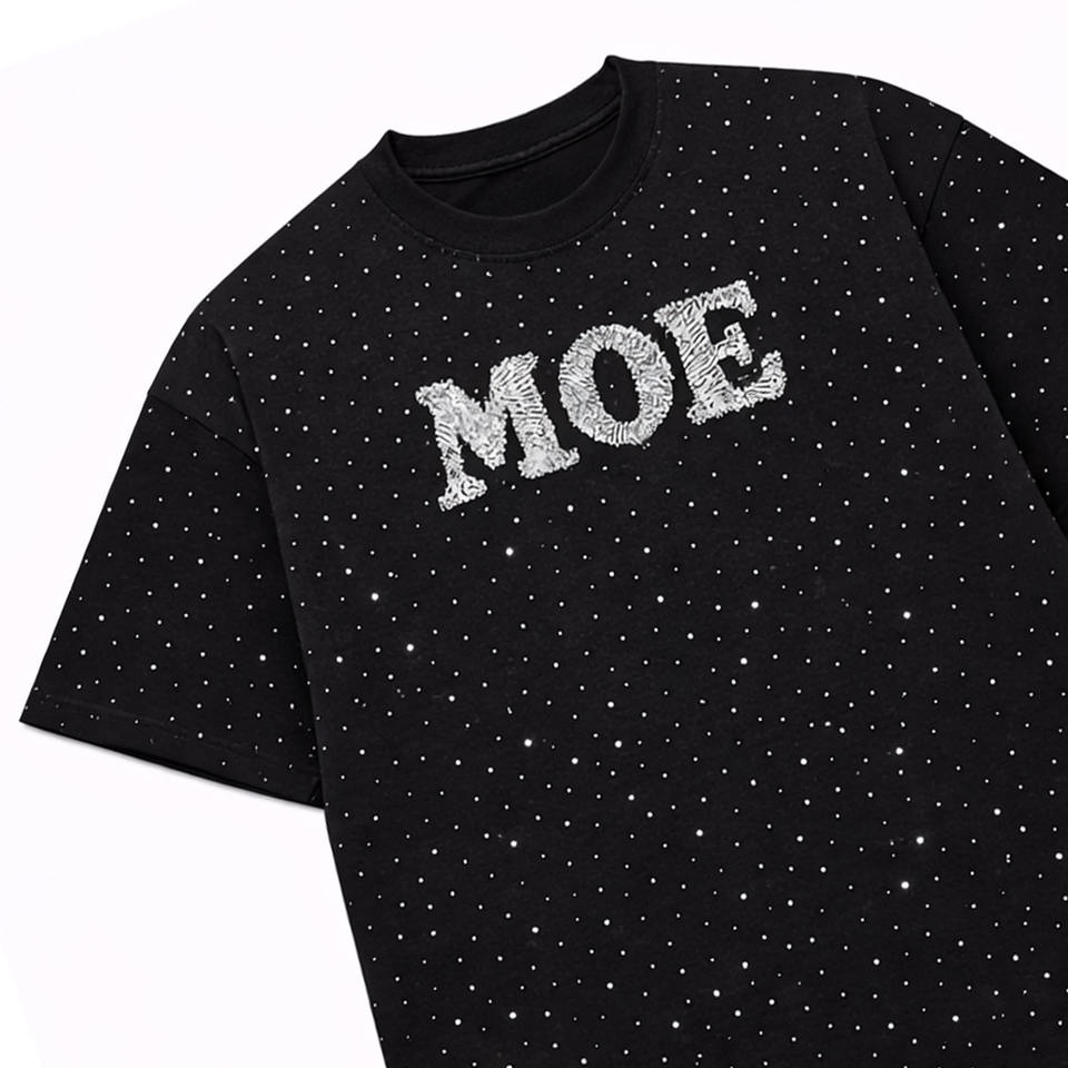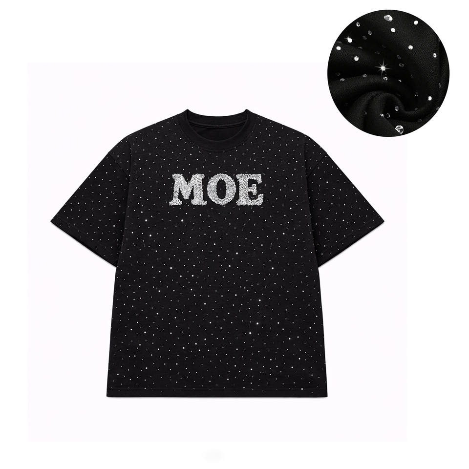 T-shirts personnalisés pour hommes, en coton, coupe ample et carrée, entièrement ornés de strass, logo personnalisé, haute qualité, fabrication OEM.