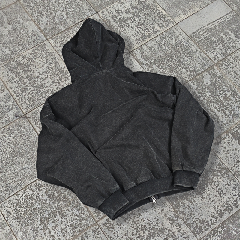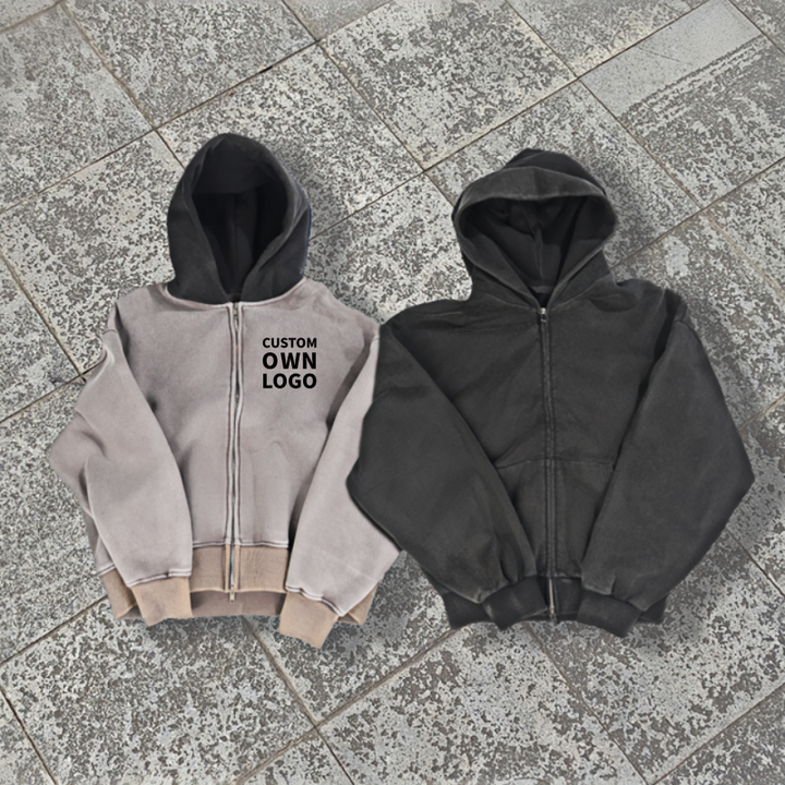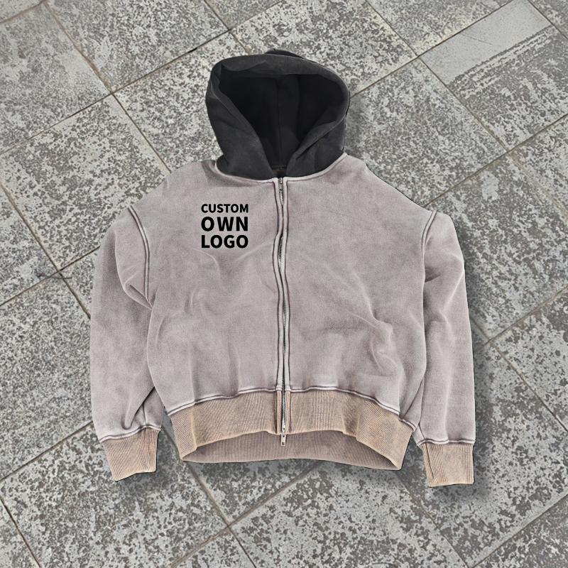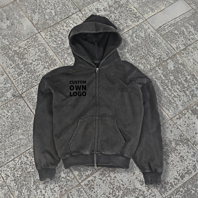 Sweat à capuche surdimensionné à coupe ample avec logo personnalisé, lavage à l'acide, fermeture éclair, épaules tombantes pour hommes, fabricant