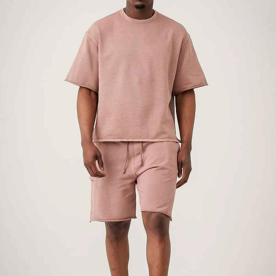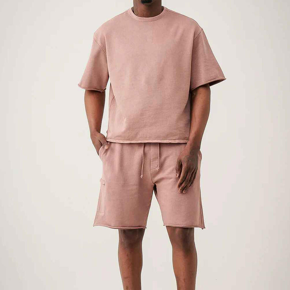 Ensemble de survêtement d'été pour homme en coton épais personnalisé, délavé à l'acide, respirant, haute qualité, comprenant un T-shirt et un short