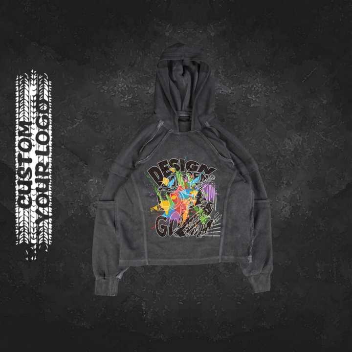 Pull à capuche oversize en coton 100% brodé, lourd, personnalisé, uni, streetwear vintage, délavé à l'acide, déchiré