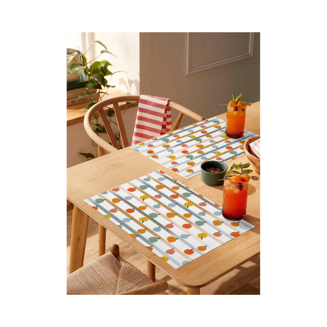 Heavyweight Jacquard Cotton Yellow Waves Table Mats 13x19 Inches 240 GSM GOTS Certified Embroidered Anti-Shrink OEM Ready