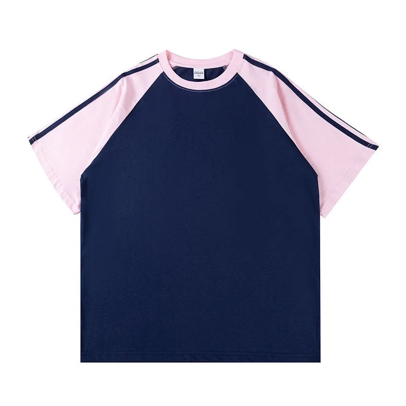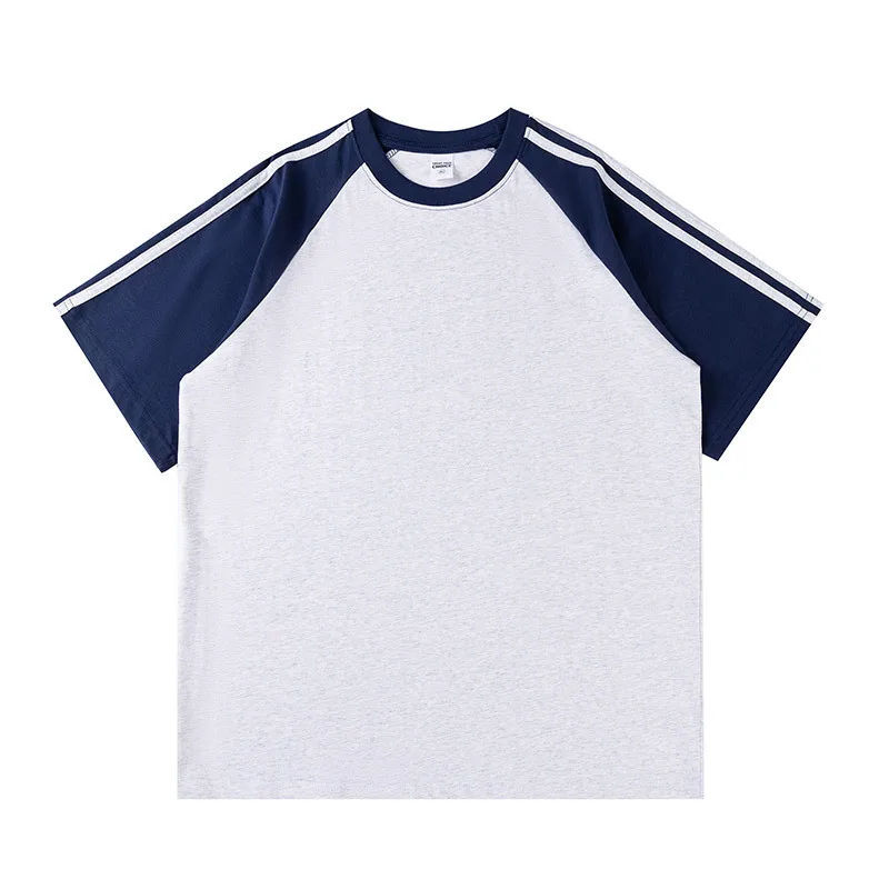 T-shirt à manches courtes en pur coton épais avec empiècements aux épaules, décontracté, pour tenue de travail, avec logo imprimé, haut d'uniforme de classe, respirant et anti-transpiration.