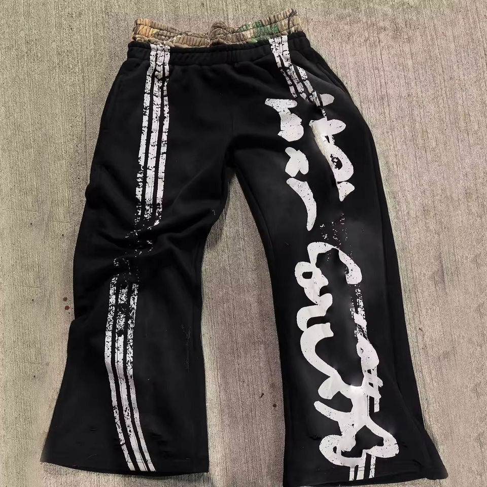 Ensemble sweat à capuche et pantalon de survêtement épais pour homme, avec broderie strass effet vieilli, style vintage délavé soleil et délavé à l'acide