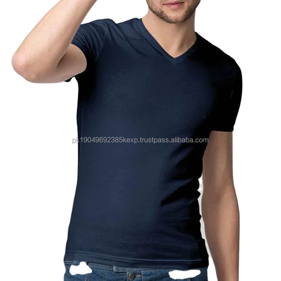 Heavyweight V-Neck Short Sleeve Clothing Solid Color Plain 100% Cotton Men's T-Shirts High Quality Bulk Stock Men's T-shirts
