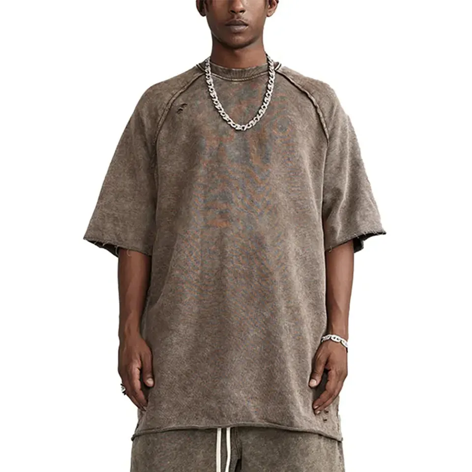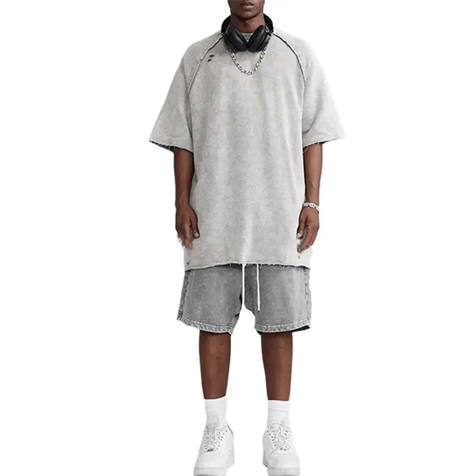 T-shirts en maille lourde lavés, ensemble de survêtement 2 pièces, coupe régulière, 100% coton, logo personnalisé pour hommes