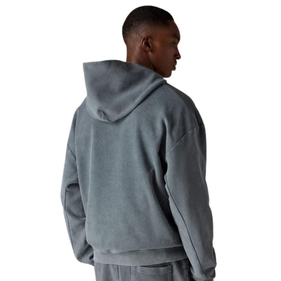 Sweat à capuche côtelé épais délavé gris, pull à manches longues en tricot doux laine/acrylique, coupe droite, pour homme, décontracté, hiver, numérique