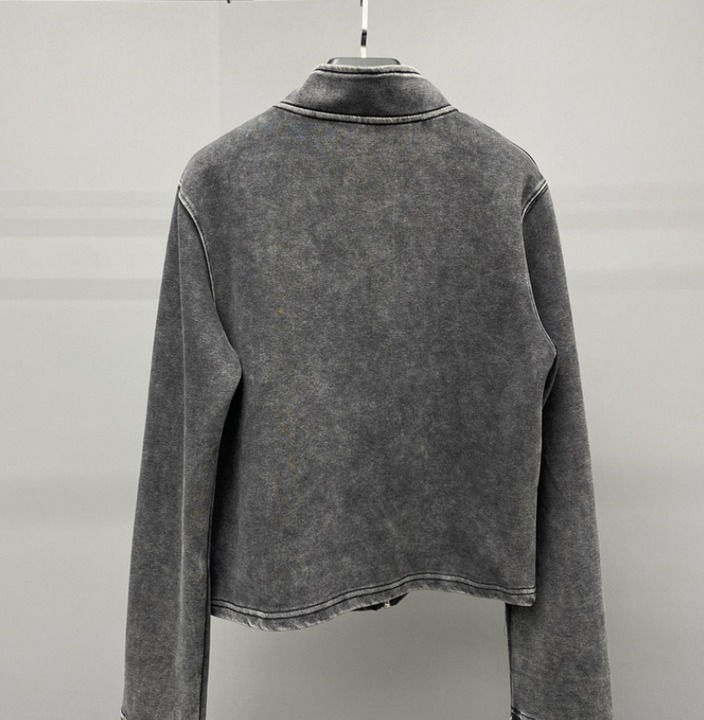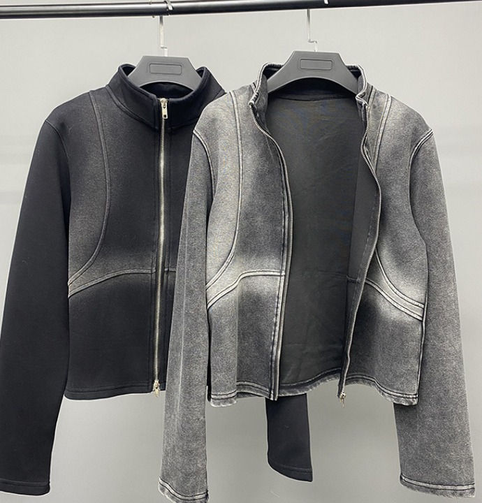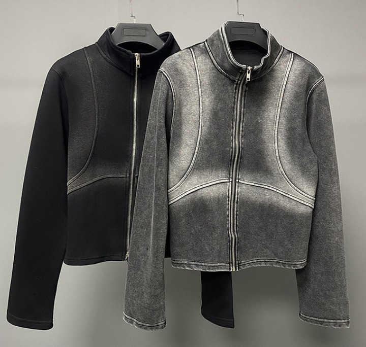 Veste à glissière lourde automne hommes Cardigan lavage à l'acide pulvérisé recadrée col haut sweat coupe-vent sweats à capuche pour femmes