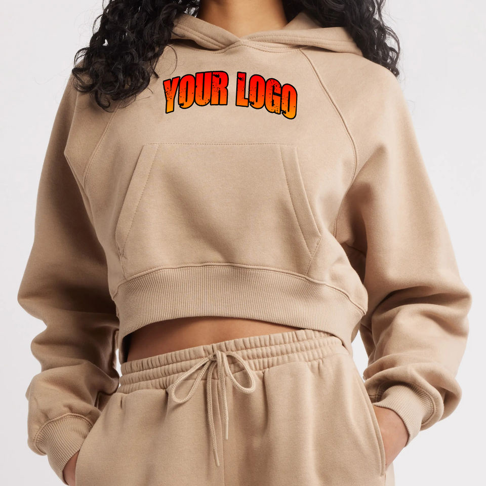 Pull épais et surdimensionné à épaules tombantes, sweat à capuche court pour femme, vêtements décontractés d'hiver, sweats à capuche pour femme avec logo imprimé DTF personnalisé