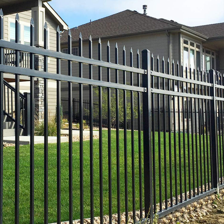Panneaux de clôture tubulaires en acier au carbone personnalisés Hebei, clôture de sécurité extérieure noire en palissade avec design 3D