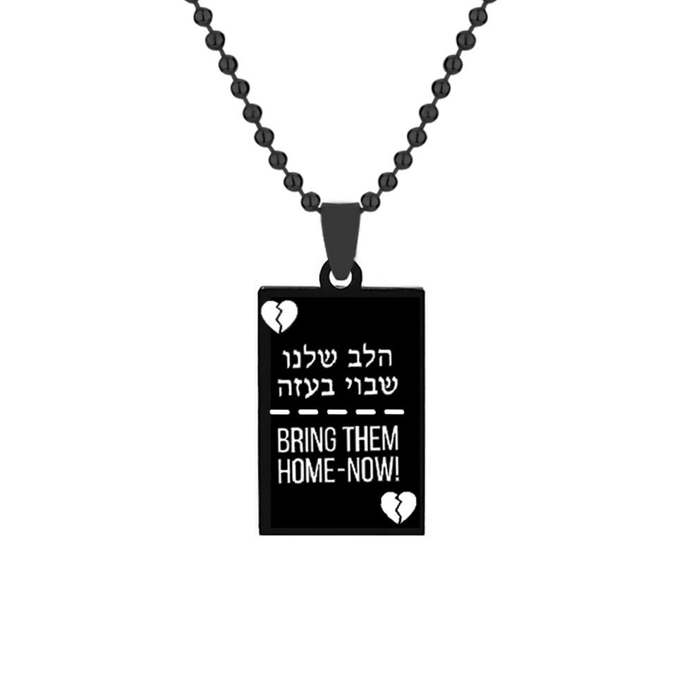 Lettres hébraïques les ramener à la maison maintenant collier bijoux juifs en acier inoxydable plaque carrée pendentif cadeau