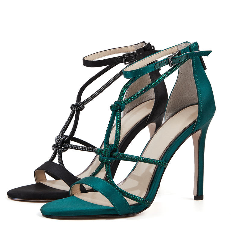 Sandales à talons hauts pour femme, bretelles, avec des strass, bout rond, fermeture éclair, chaussures d'été Sexy, 2022