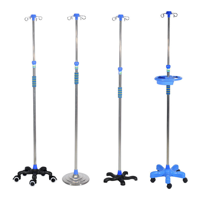 Support IV en acier inoxydable réglable en hauteur, table d'hôpital portable avec support de perfusion en acier inoxydable épaissi