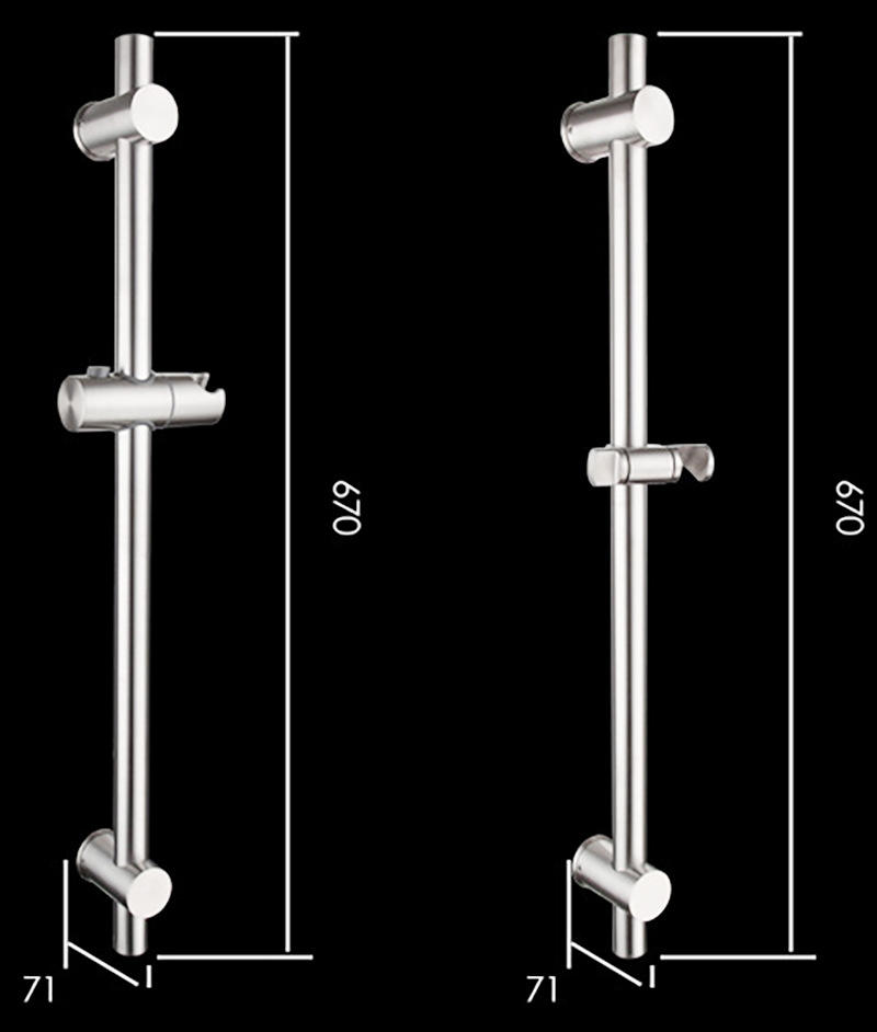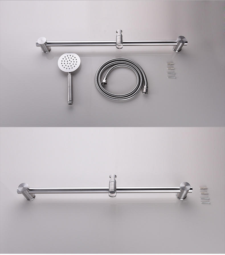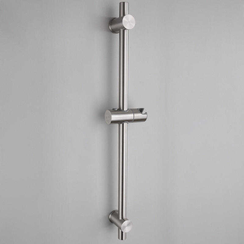 Support de douche mural réglable en hauteur/angle, en acier inoxydable brossé, barre de douche coulissante