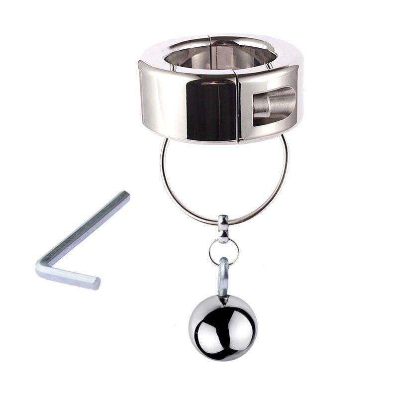 Anneau pénien lourd en acier inoxydable avec pendentif boule, dispositif de chasteté, anneau de chasteté avec pendentif boule, anneau pénien extenseur de scrotum, jouets sexuels masculins en métal verrouillables