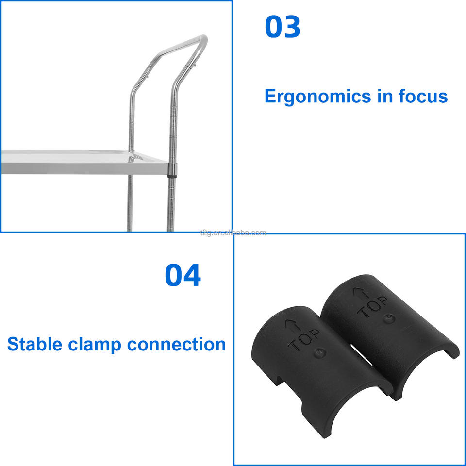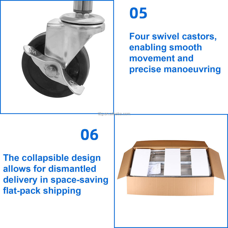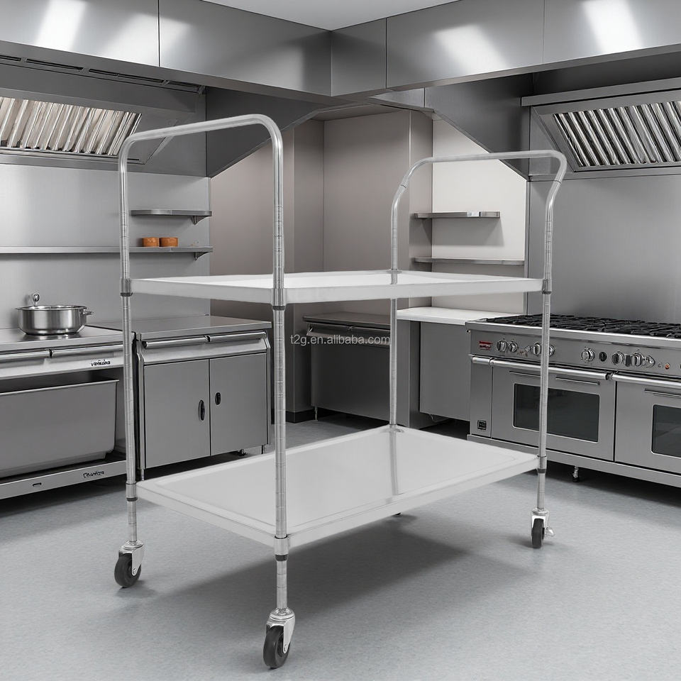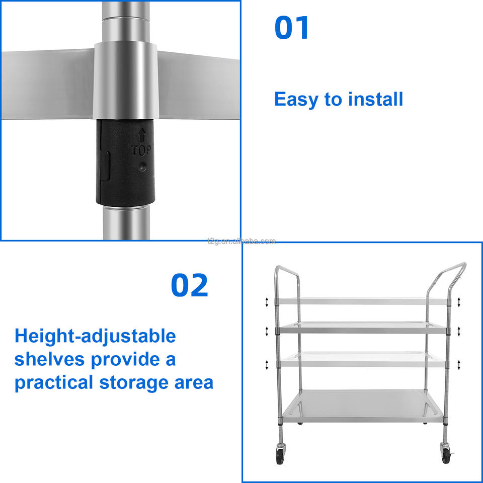 Chariot de service de restauration en acier inoxydable commercial réglable en hauteur