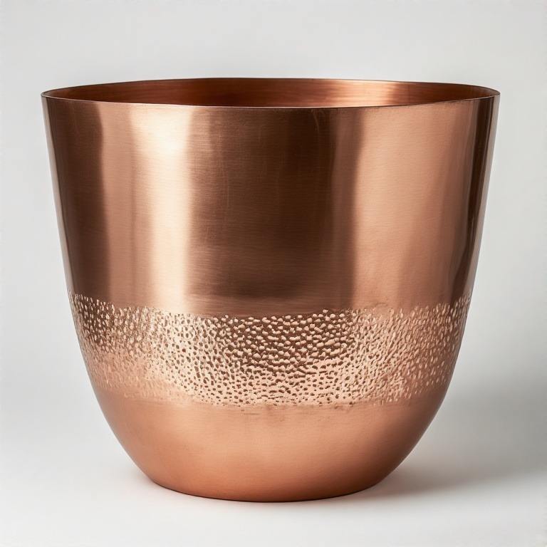 Jardinière Heirloom Shine avec marques de marteau profondes et lueur argentée pour des projets d'intérieur exclusifs axés sur la décoration