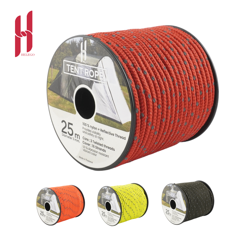Helego Haute Visibilité 3mm Nylon Réfléchissant Guyline Cordon Glow-in-the-Dark 200kg Résistance À La Traction 25m Tente Corde Améliorée En Plein Air