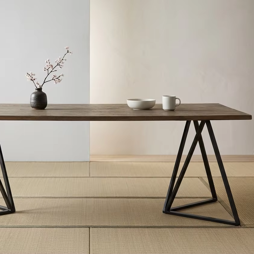 Table à manger en bois massif sur mesure Helen, style industriel, avec structure métallique pour projets d'aménagement intérieur d'hôtels et de cafés