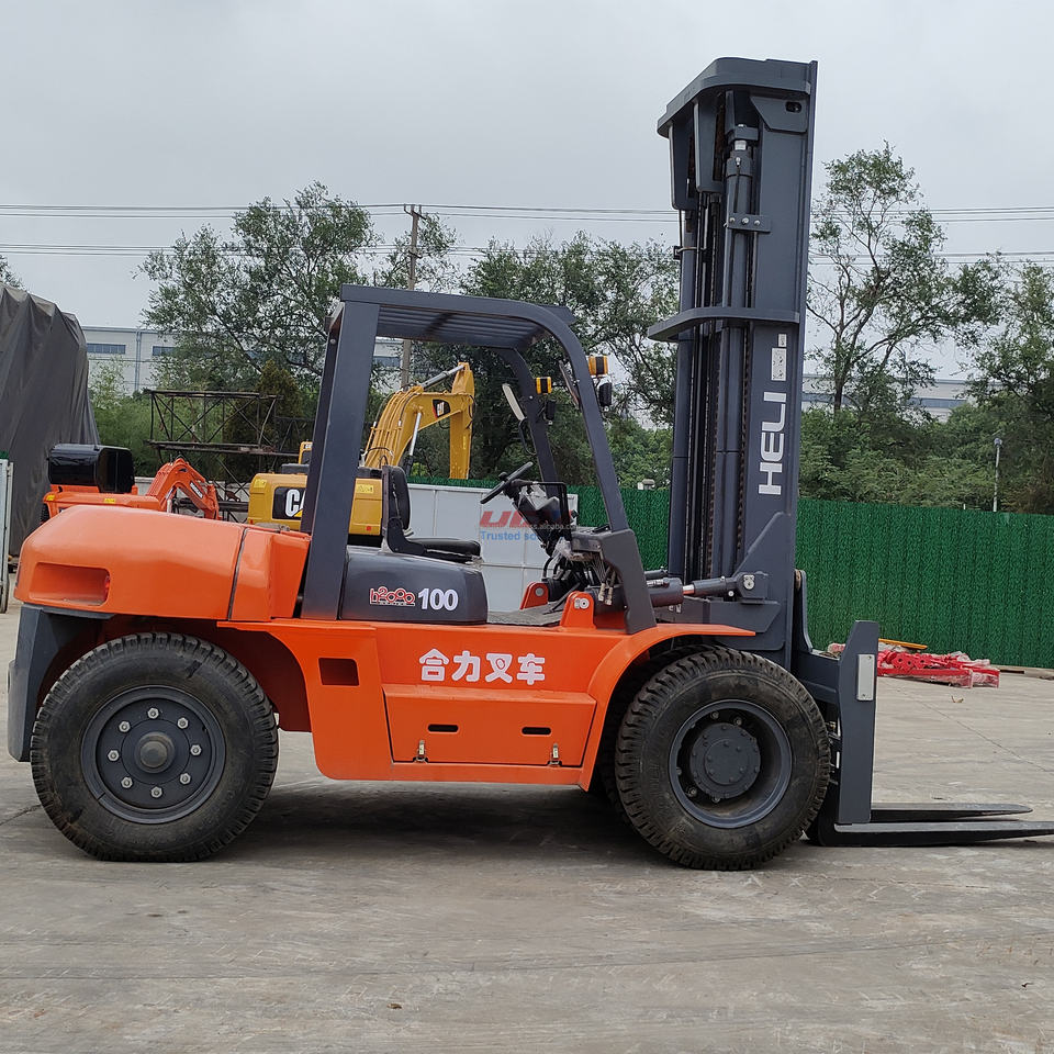 Chariot élévateur à palettes Heli FD100 10 tonnes d'occasion, 4x4, manuel, à moteur, pour travaux de construction