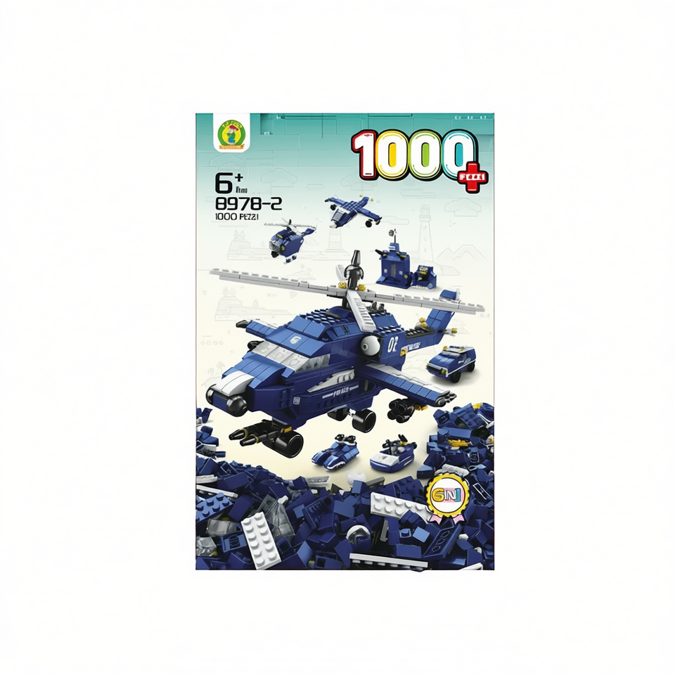 Blocs de construction d'hélicoptère 1000 pièces 6+ ans Ensemble police