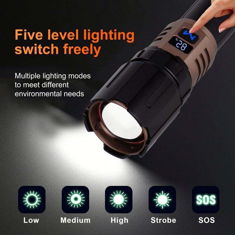 WOSEN 5000 Lumens Haute Puissance Linterna Étanche USB Rechargeable Lanterne Blanc LED Torche Lumière Tactique Lampe de Poche