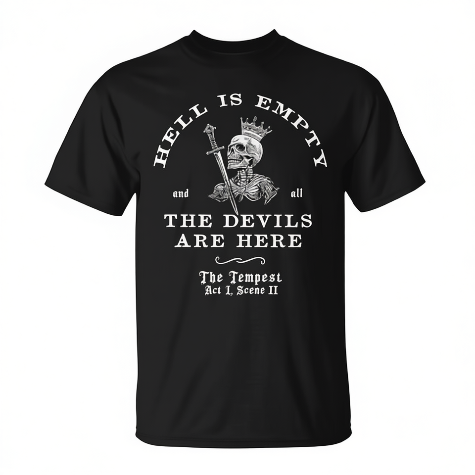 T-shirt noir avec citation « L'enfer est vide et tous les diables sont ici », taille adulte unisexe