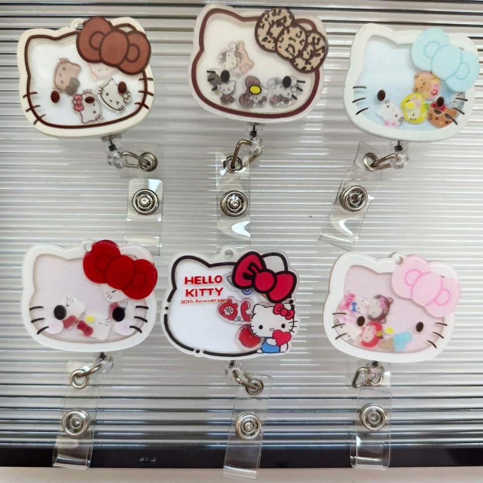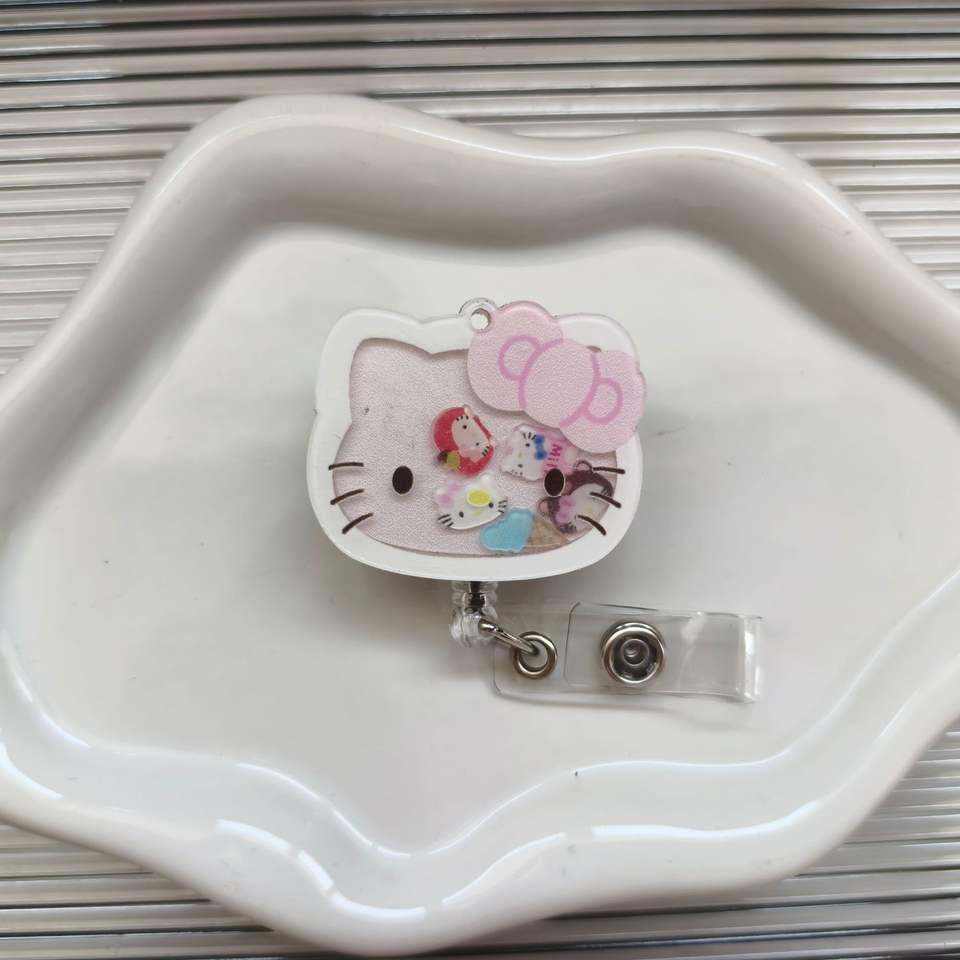 Porte-badge en acrylique à motif de chat de dessin animé avec pinces crocodiles, accessoires pour infirmières et personnel médical, porte-badges rétractables à personnage