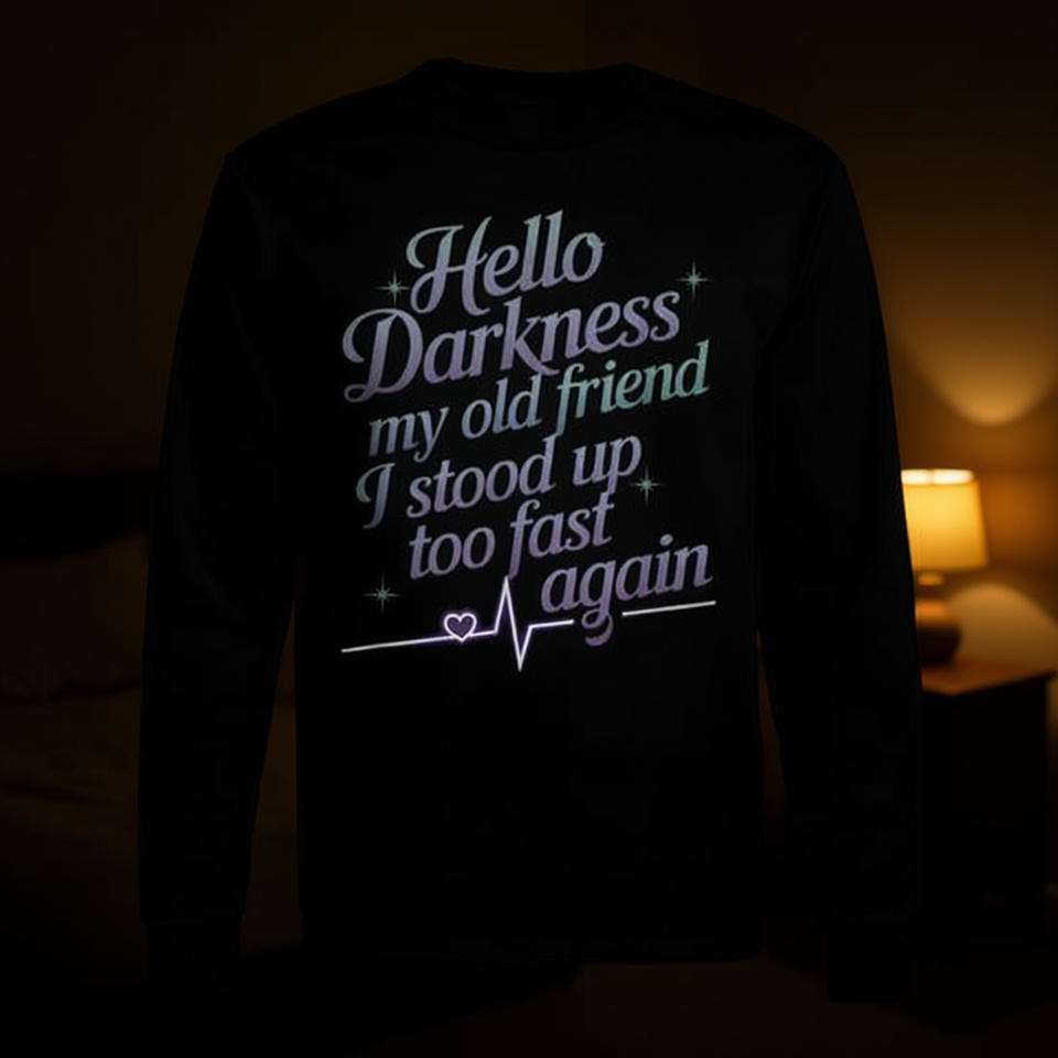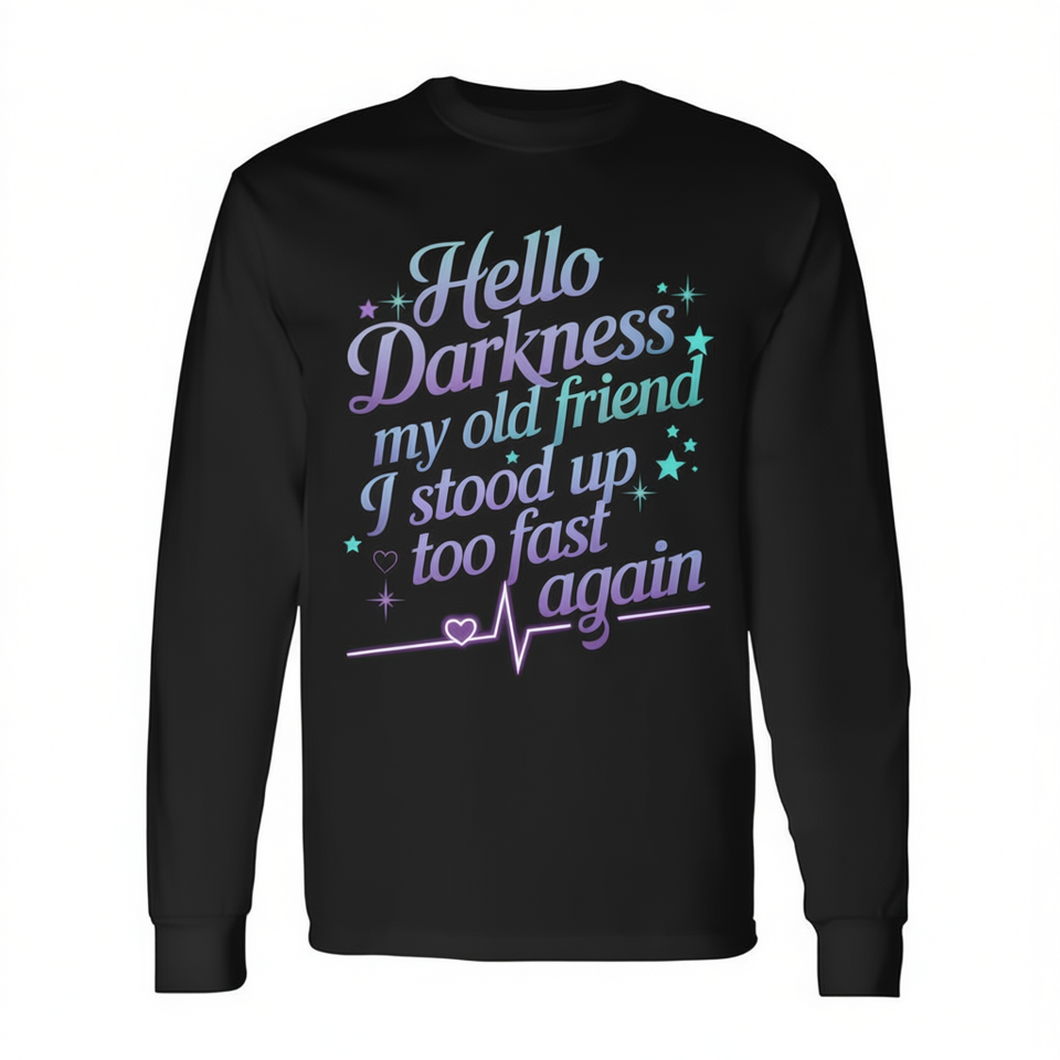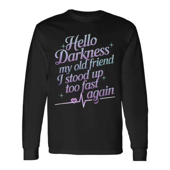 Bonjour l'obscurité, mon vieux ami, je me suis levé trop rapidement, T-shirt à manches longues