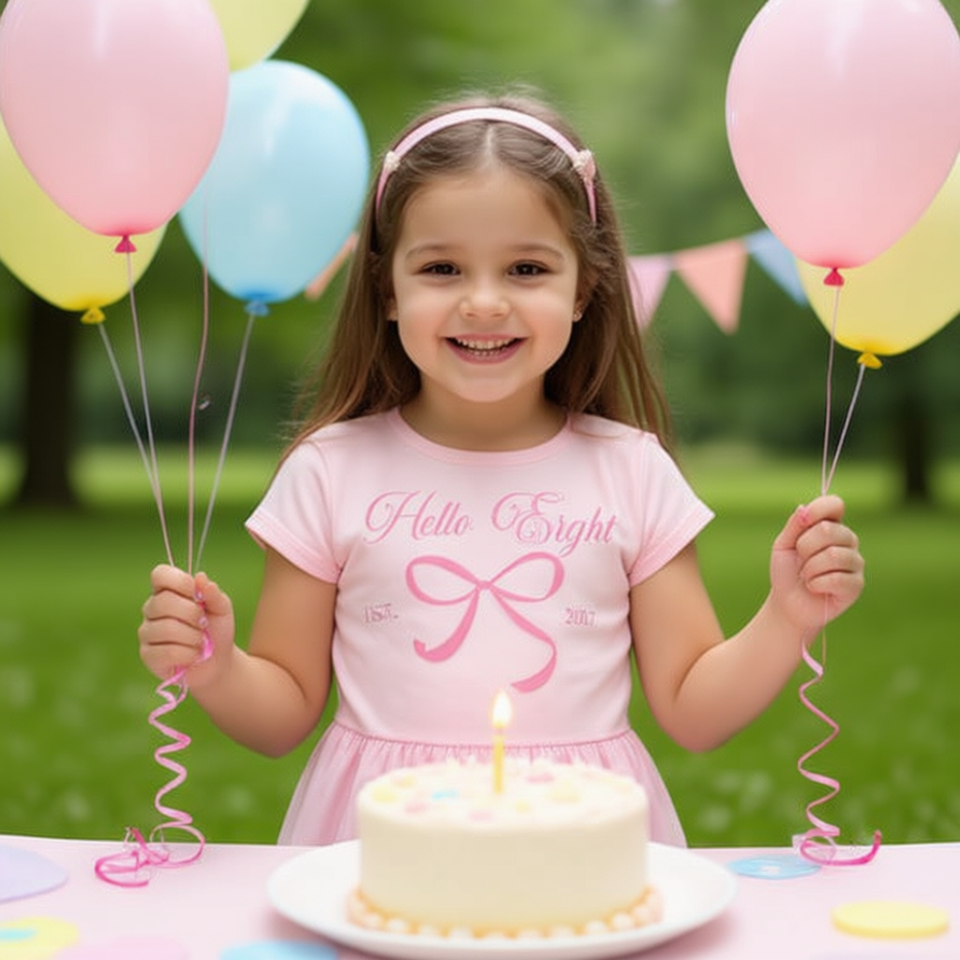Hello Eight 8Th Birthday Girl T-Shirt Est 2017 Pink Bow Design