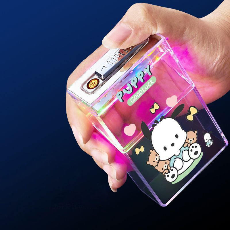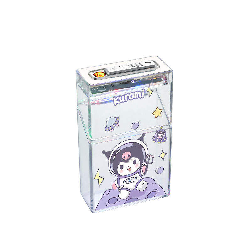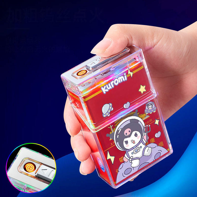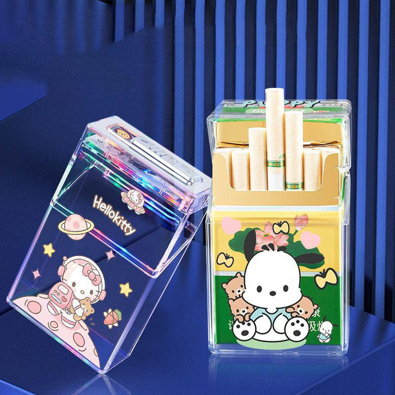 Hello kitty kuromi chiot étui à cigarettes briquet rechargeable 20 pièces boîte à cigarettes transparente allumage au tungstène