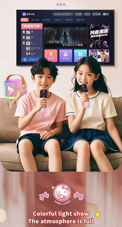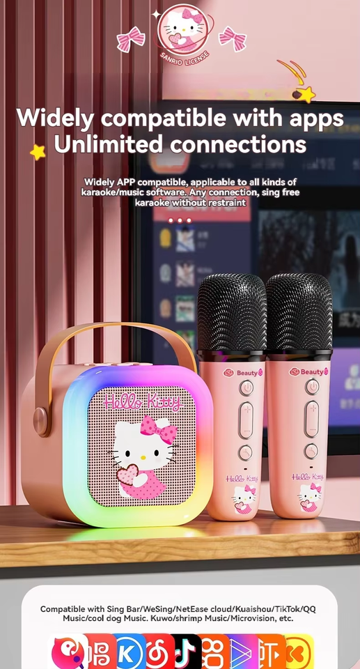 Hello Kitty Portable pour Machine de karaoké Bluetooth RGB LED éclairage maison famille chant cadeau avec micro