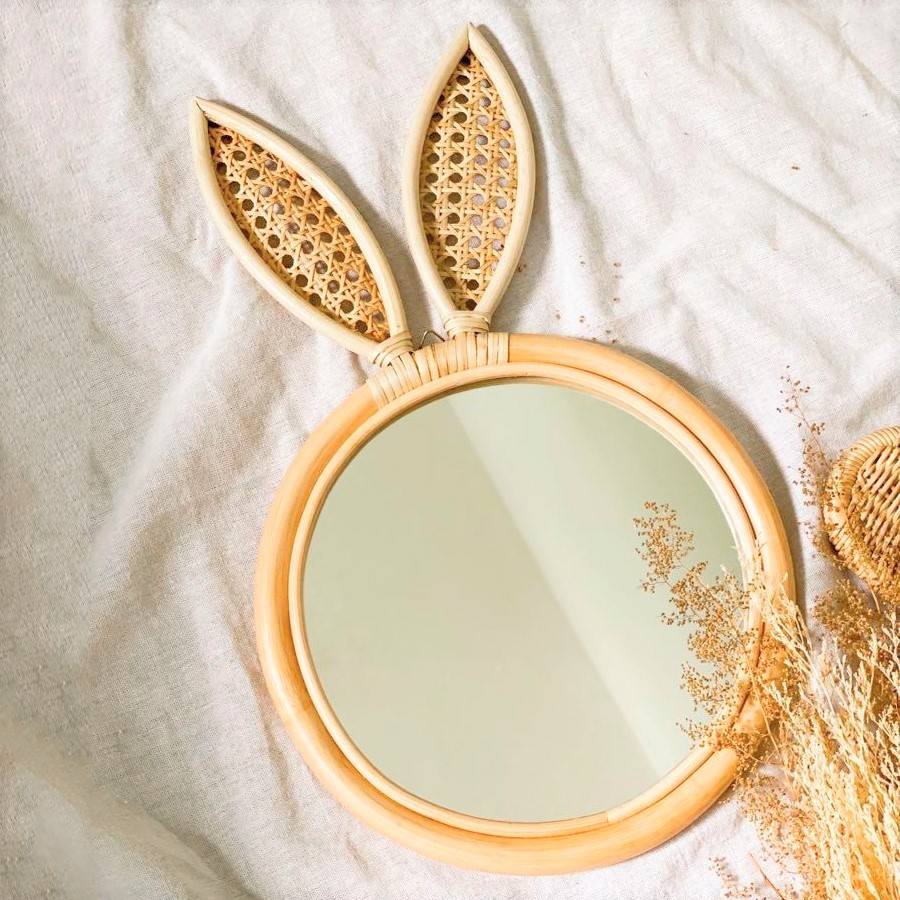 Bonjour kitty amant chambre décoration rotin mural miroir suspendu osier art miroirs pour chambres d'enfants