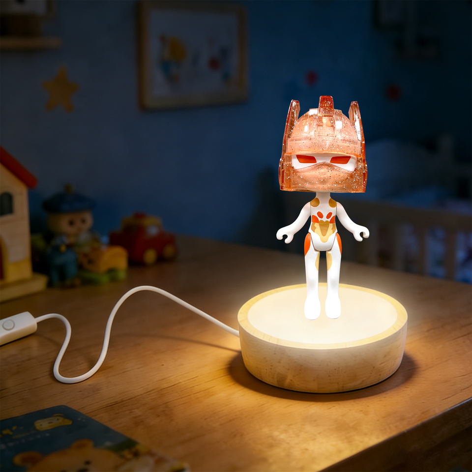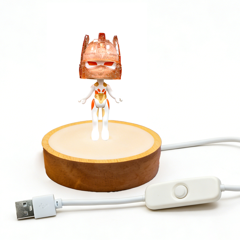HelmeTeam Glitters Jupiter Veilleuse LED avec base, câble USB, commande à un bouton, lumière blanc chaud doux 2700K, petite taille, cadeau décoratif