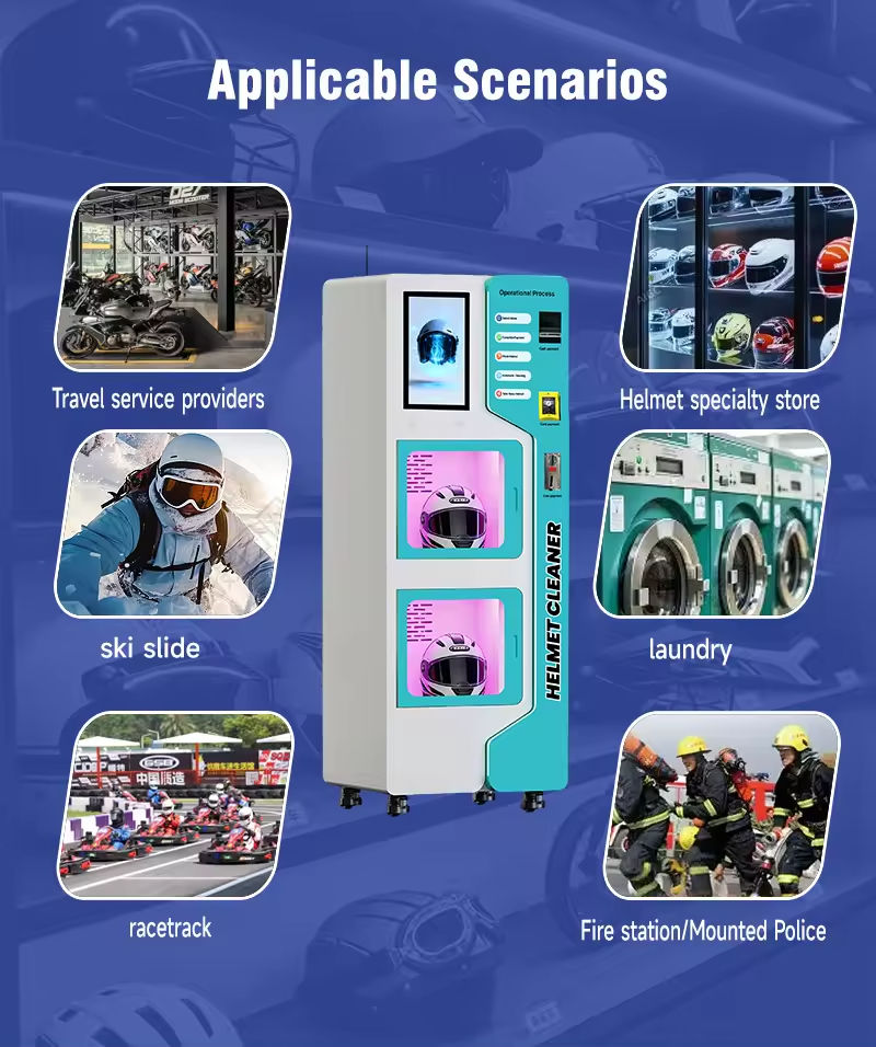 Machine de nettoyage de casques avec système de paiement QR, pièces de monnaie et billets – Stérilisateur de casques