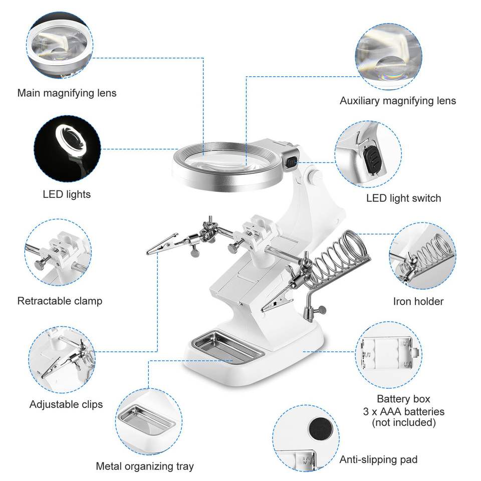 Loupe à main avec lumière LED et visière de soudage à trois doigts réglable à 360 degrés 3X/4.5X – Catégorie de produit : Loupes