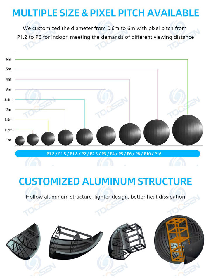 Écran LED Hémisphérique P1.2 P1.5, Globe Immersif 3D 4D, Affichage Virtuel Interne, Grande Sphère Vidéo LED Demi-Sphérique