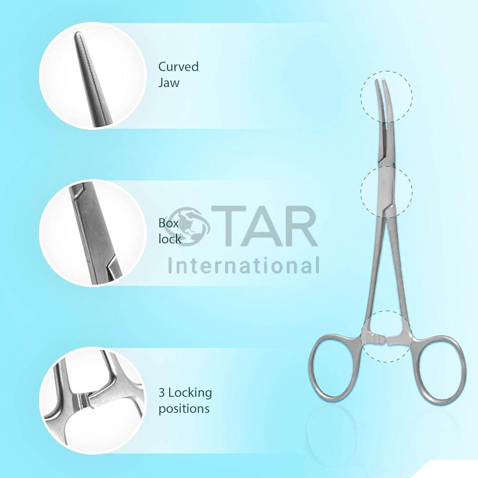 Hemostat Forceps Locking Tweezers Clamp, 5.5-Inch Curved Surgical Tool Medic Instruments Silver Hemostatic Forceps