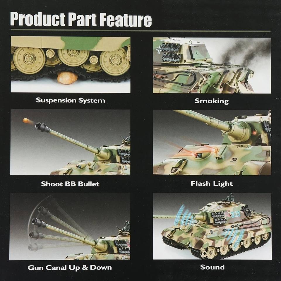 HengLong 3888A-1 RC Char Allemand King Tiger Henschel 1:16 RC en Métal