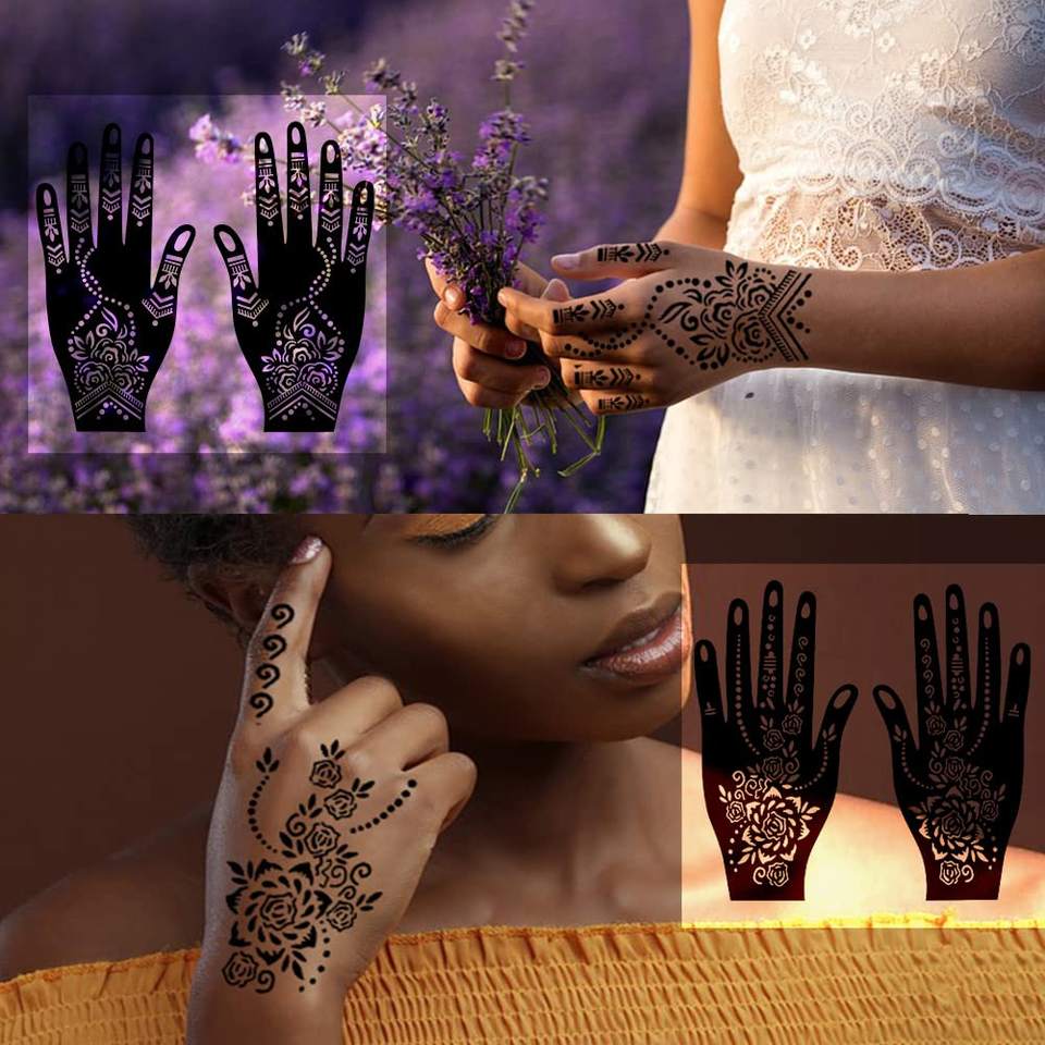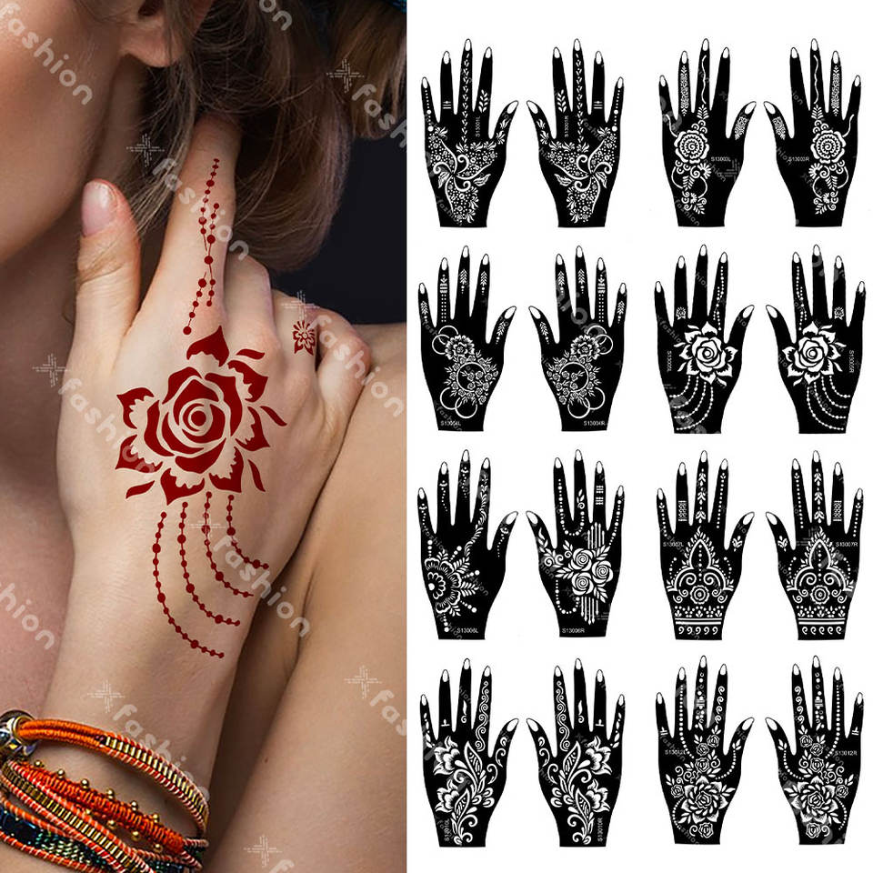 Kit de pochoirs pour tatouages au henné pour l'art corporel, modèles de tatouages temporaires indiens et arabes, autocollants de pochoirs Mehndi